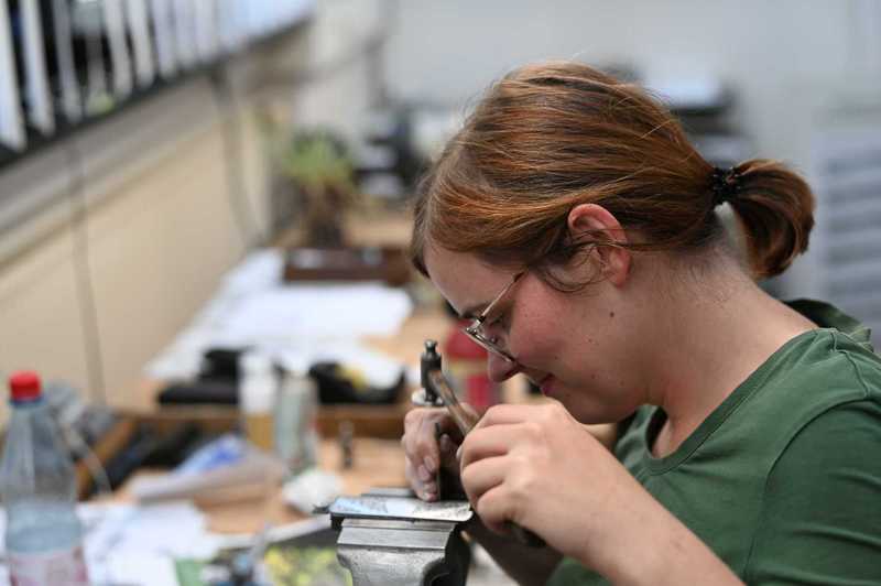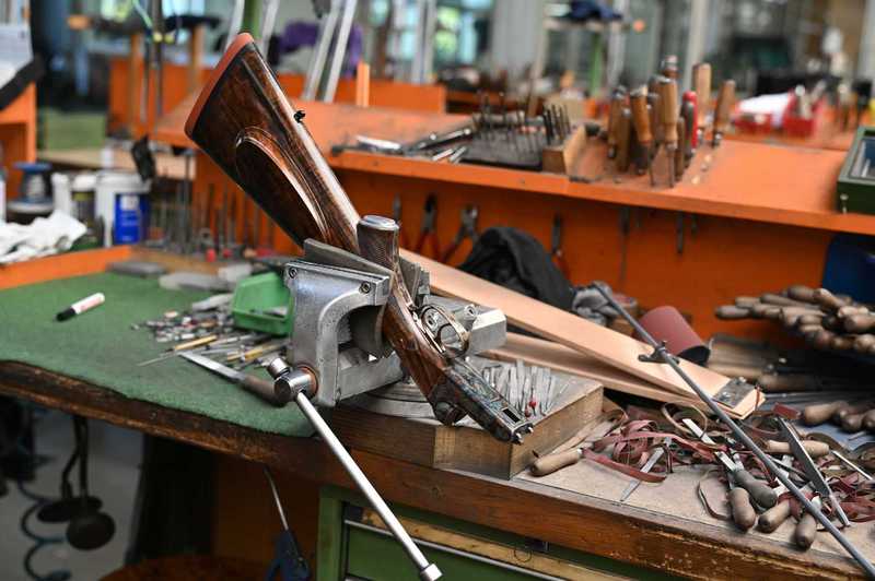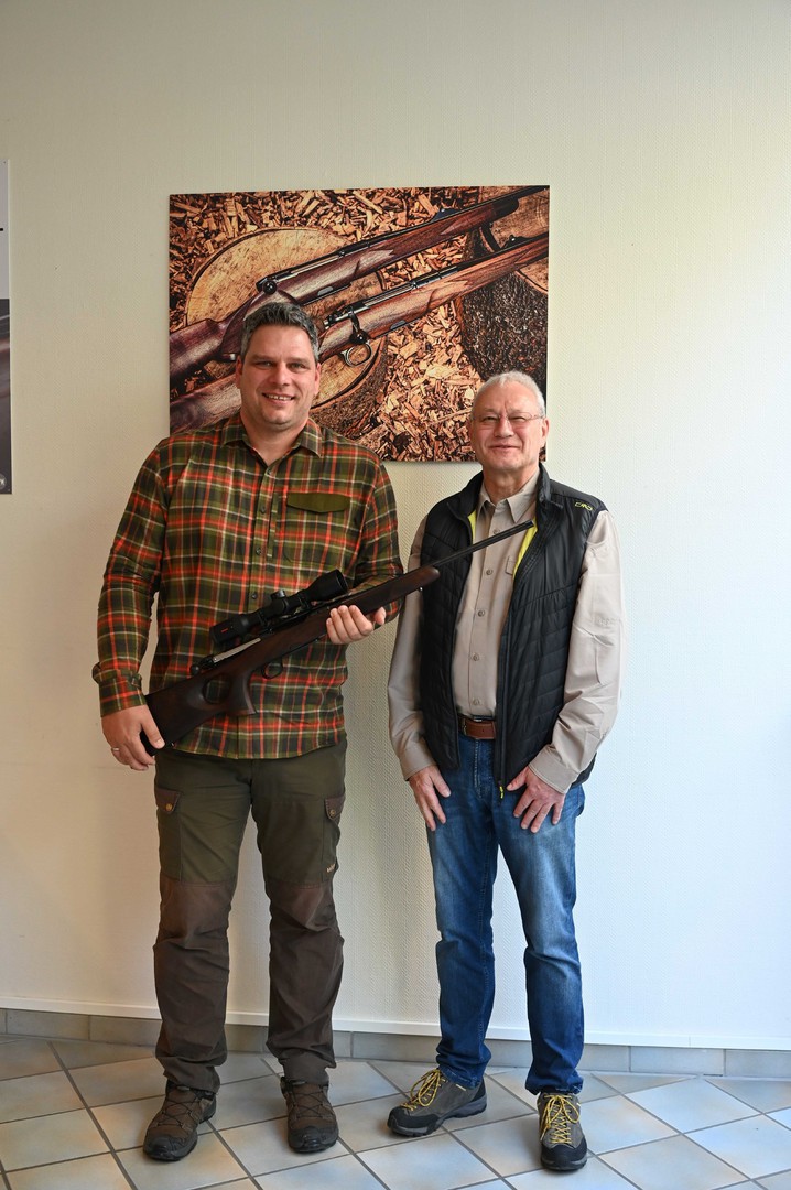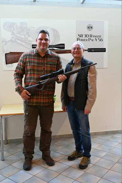 .... die Übergabe heute hat geklappt . Manfred Eisenbrand hat sich 2 Stunden Zeit genommen und uns durch das Werk geführt. Von dem Laufbohren über das Laufhämmern in der 50 Jahre alten Hämmermaschine zum herstellen der Gestecke für Doppelbüchsen, das Systemieren ,das verlöten der Laufbündel ,zum Schäften und dem Schaftholzlager. Eine Graveurin durften wir bei ihrer Arbeit beobachten und mit Fragen löchern. Die ganze Zeit hat auch Manfred Eisenbrand unsere Fragen geduldig beantwortet. Den Schießstand mit der Werkstatt zum regulieren der Doppelbüchsen hat er uns dann noch vorgeführt. Anschließen ging es in den "Showroom" dort hat er uns ein paar Schmuckstücke in die Hand gedrückt (siehe Fotos) und die ganze Modellpalette konnten wir ausprobieren . Im ganzen Werk wird noch sehr viel mit der Hand und am Schraubstock gearbeitet. Dann durfte Oliver seinen Hauptpreis eine SR 30 , übernehmen und am Schießstand wurde die Waffe mit seinen mitgebrachten Patronen eingeschossen.